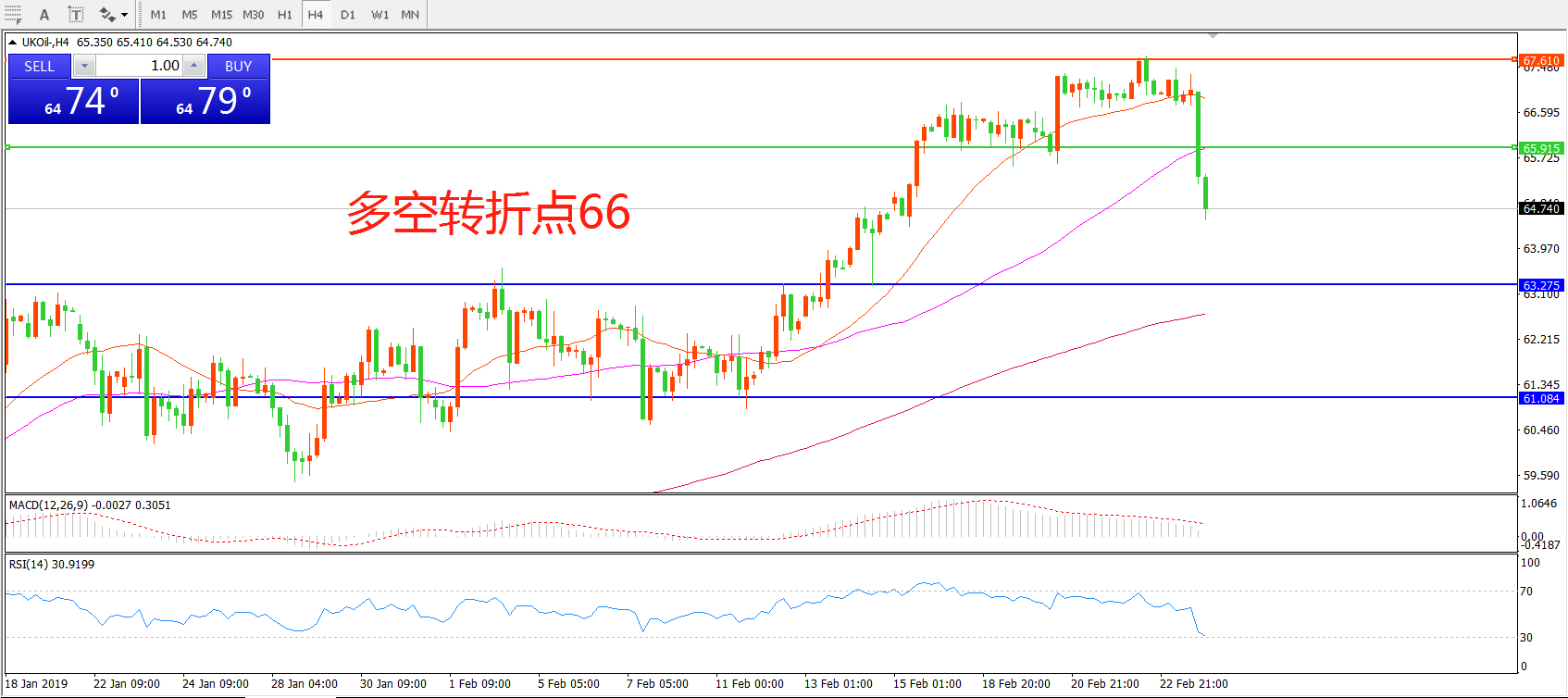 交易策略:在66.00之下看跌,目标61.00 58.00