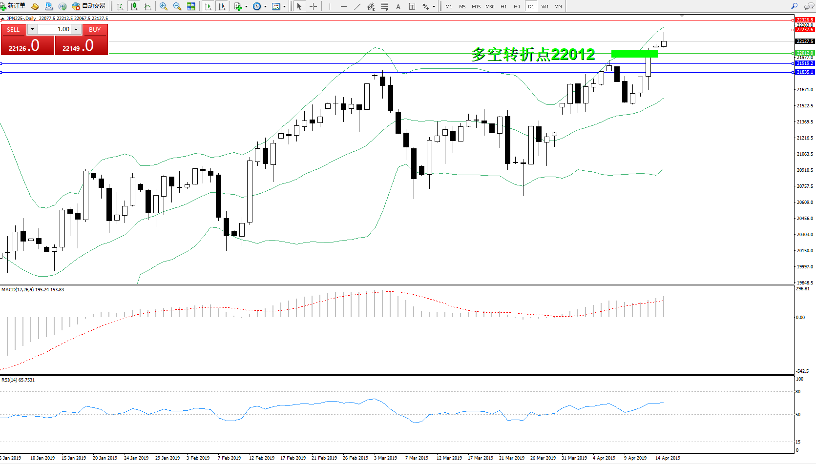 交易策略:22012上方看涨,目标2223722326