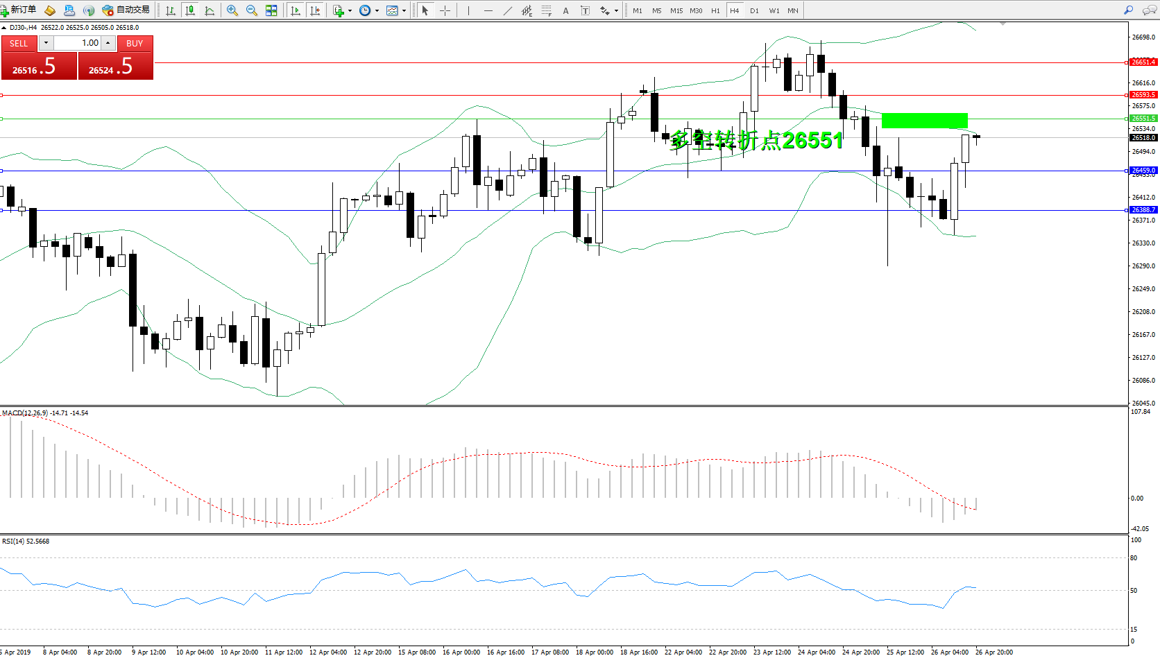 交易策略:26551下方看跌,目标26459、26388