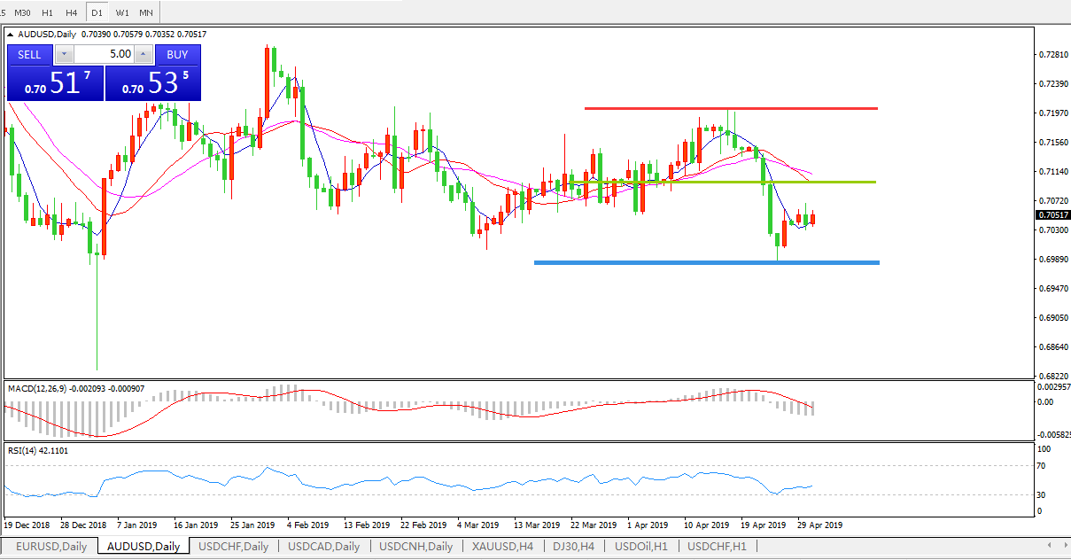 交易策略:在0.7110之下,看跌,目标价位为0.7000,然后为0.6920。