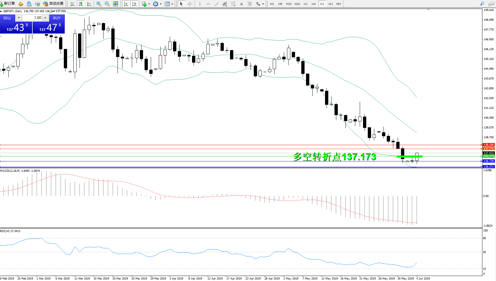 交易策略:137.173上方看涨,目标137.775、138.109
