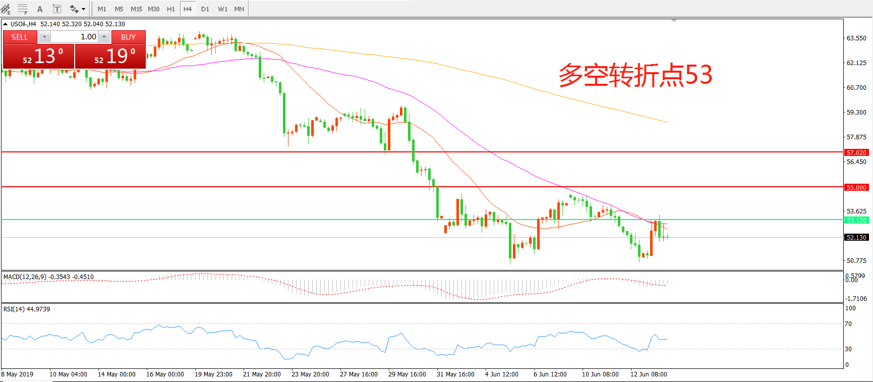 交易策略:在53.00之下看跌,目标50.00    46.00