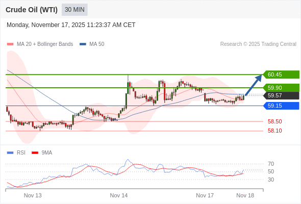 在 59.15 之上,看涨,目标价位为 59.90 ,然后为 60.45 。