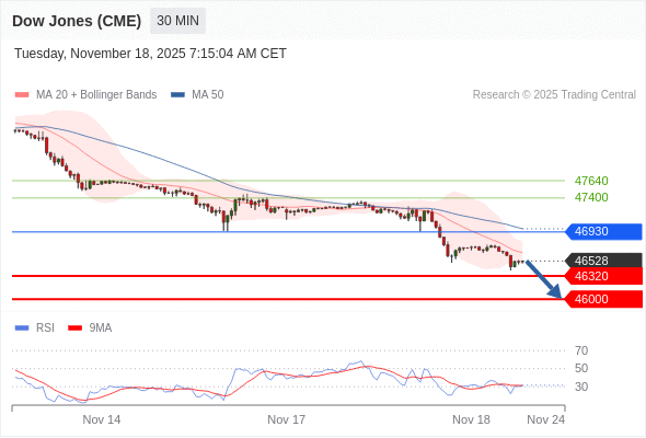 在 46930 之下,看跌,目标价位为 46320 ,然后为 46000 。