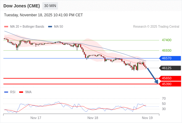 在 46570 之下,看跌,目标价位为 45650 ,然后为 45390 。