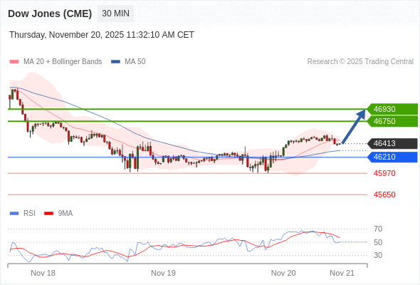 在 46210 之上,看涨,目标价位为 46750 ,然后为 46930 。