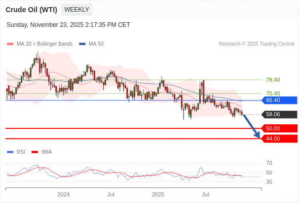 在 66.40 之下,看跌,目标价位为 50.00 ,然后为 44.00 。