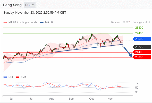恒生指数 短线: 反转向下。