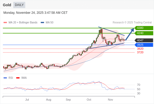 在 3925 之上,看涨,目标价位为 4240 ,然后为 4380 。