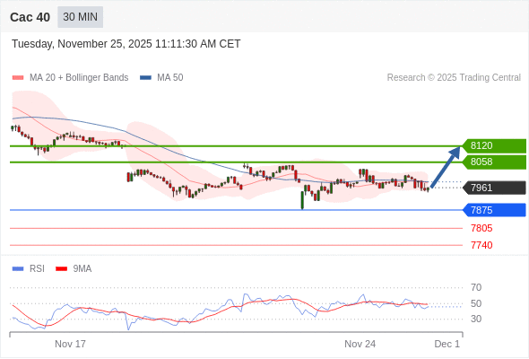 在 7875 之上,看涨,目标价位为 8058 ,然后为 8120 。