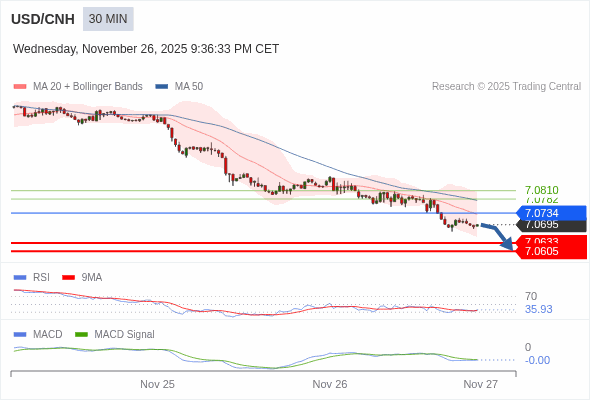 交易策略: 看跌,在 7.0734 之下。