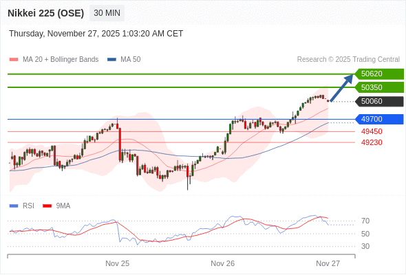 在 49700 之上,看涨,目标价位为 50350 ,然后为 50620 。
