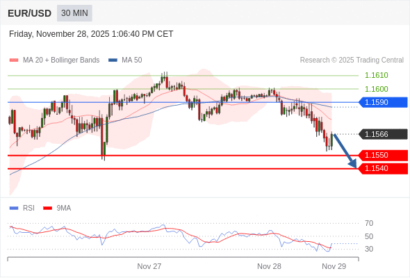 在 1.1590 之下,看跌,目标价位为 1.1550 ,然后为 1.1540 。