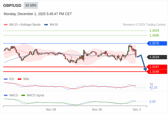 英镑/美元 当日内 : 看跌,当 1.3276 为阻力位。