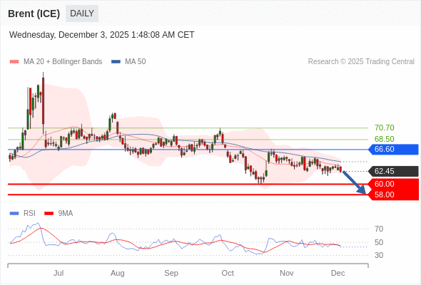 在 66.60 之下,看跌,目标价位为 60.00 ,然后为 58.00 。