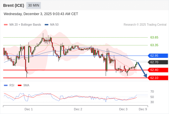 在 62.95 之下,看跌,目标价位为 62.40 ,然后为 62.10 。