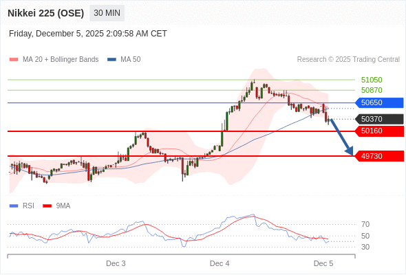 在 50650 之下,看跌,目标价位为 50160 ,然后为 49730 。