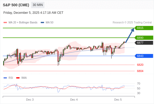 在 6843 之上,看涨,目标价位为 6890 ,然后为 6915 。