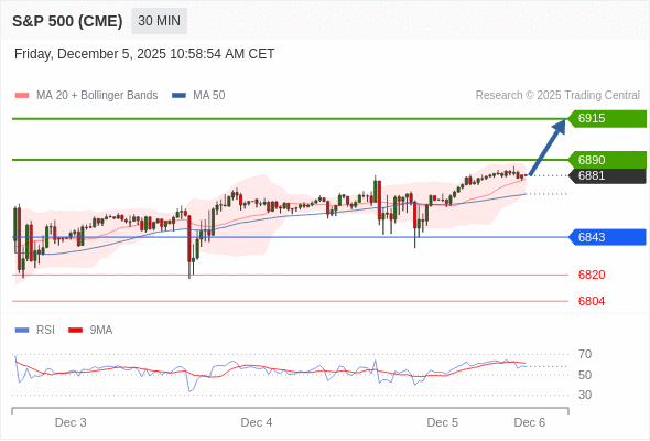 在 6843 之上,看涨,目标价位为 6890 ,然后为 6915 。
