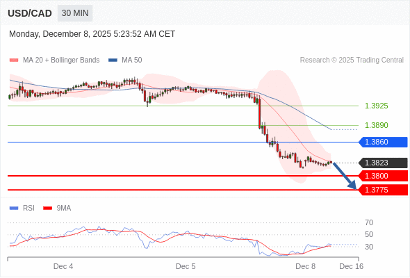 在 1.3860 之下,看跌,目标价位为 1.3800 ,然后为 1.3775 。