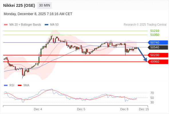 在 50740 之下,看跌,目标价位为 50230 ,然后为 49960 。