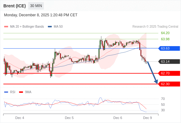 在 63.65 之下,看跌,目标价位为 62.70 ,然后为 62.30 。