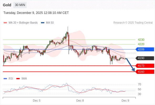 在 4209 之下,看跌,目标价位为 4173 ,然后为 4160 。