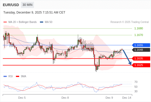 在 1.1655 之下,看跌,目标价位为 1.1635 ,然后为 1.1625 。
