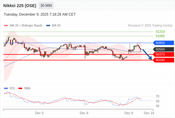 在 50800 之下,看跌,目标价位为 50370 ,然后为 50160 。