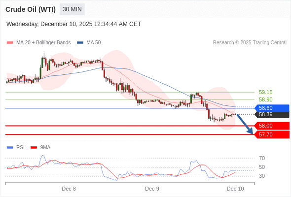 在 58.60 之下,看跌,目标价位为 58.00 ,然后为 57.70 。