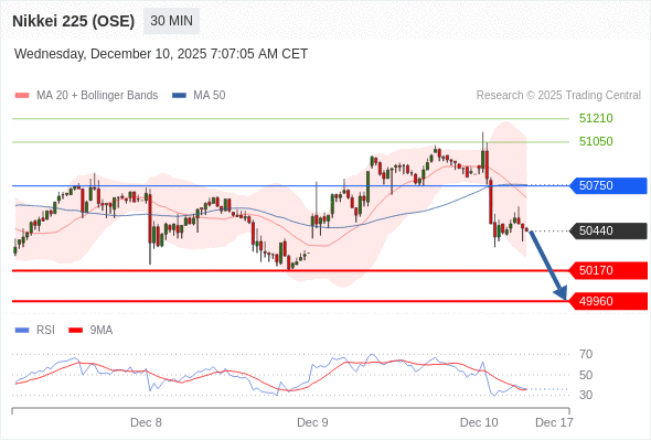 在 50750 之下,看跌,目标价位为 50170 ,然后为 49960 。