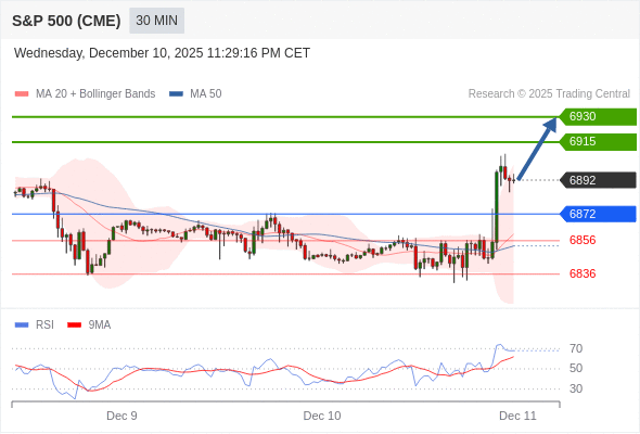 在 6872 之上,看涨,目标价位为 6915 ,然后为 6930 。