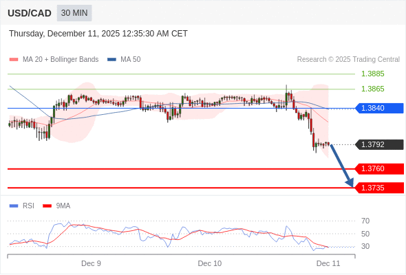 在 1.3840 之下,看跌,目标价位为 1.3760 ,然后为 1.3735 。