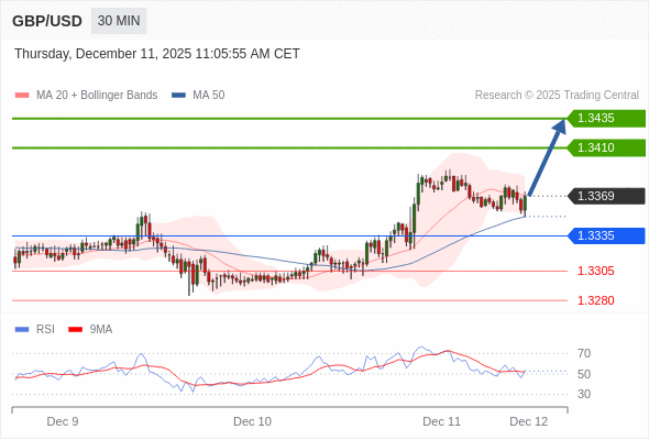 在 1.3335 之上,看涨,目标价位为 1.3410 ,然后为 1.3435 。