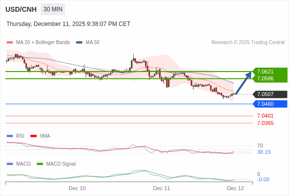 美元/人民币 当日内 : 有上涨的可能,目标价位定在 7.0621 。