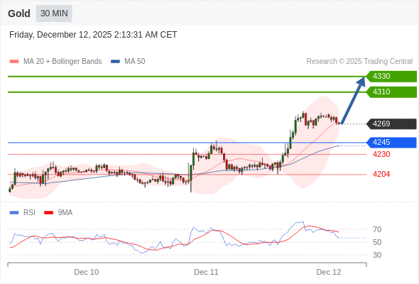在 4245 之上,看涨,目标价位为 4310 ,然后为 4330 。