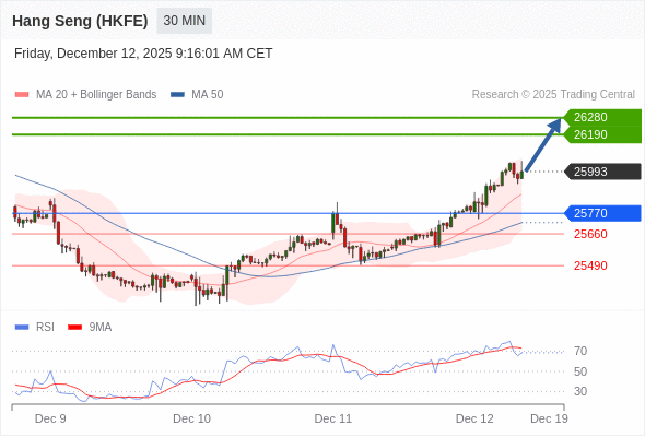 在 25770 之上,看涨,目标价位为 26190 ,然后为 26280 。