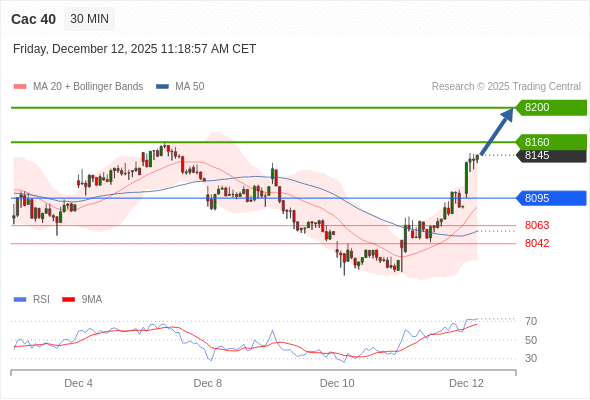 Cac 40 当日内: 进一步上涨。