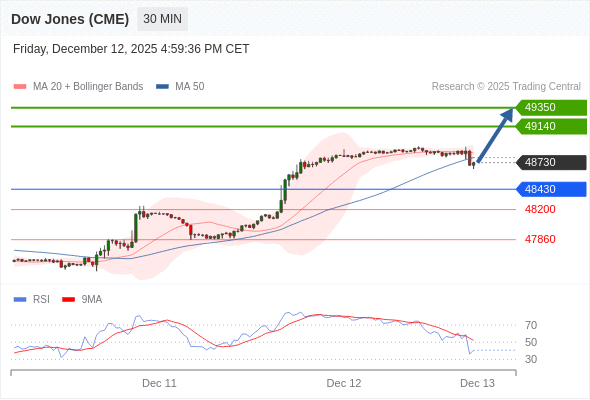 在 48430 之上,看涨,目标价位为 49140 ,然后为 49350 。
