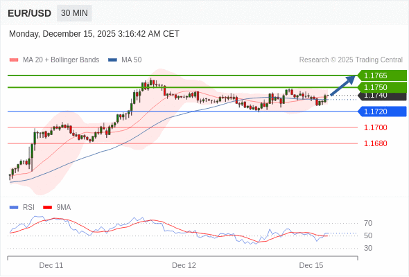 在 1.1720 之上,看涨,目标价位为 1.1750 ,然后为 1.1765 。