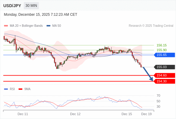 在 155.65 之下,看跌,目标价位为 154.60 ,然后为 154.30 。