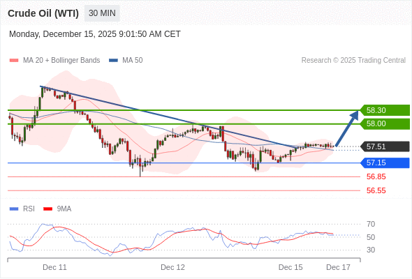在 57.15 之上,看涨,目标价位为 58.00 ,然后为 58.30 。