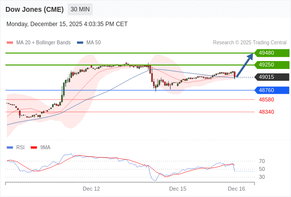 在 48780 之上,看涨,目标价位为 49250 ,然后为 49480 。