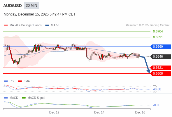 澳元/美元 当日内 : 看跌,在 0.6669 之下。