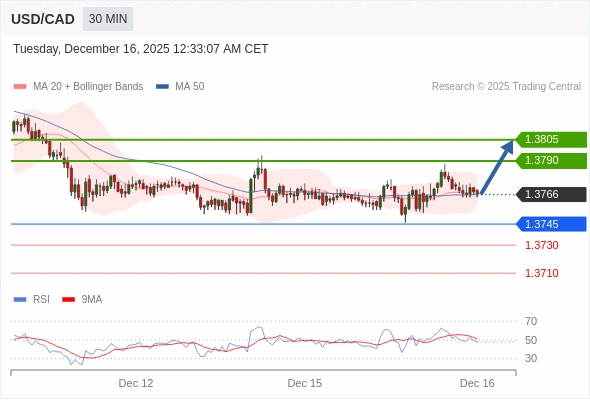 在 1.3745 之上,看涨,目标价位为 1.3790 ,然后为 1.3805 。