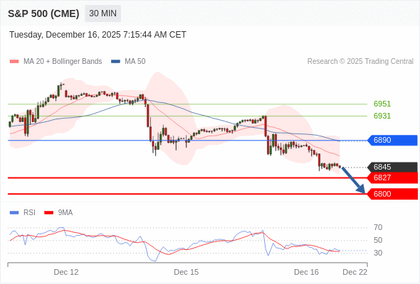 在 6890 之下,看跌,目标价位为 6827 ,然后为 6800 。