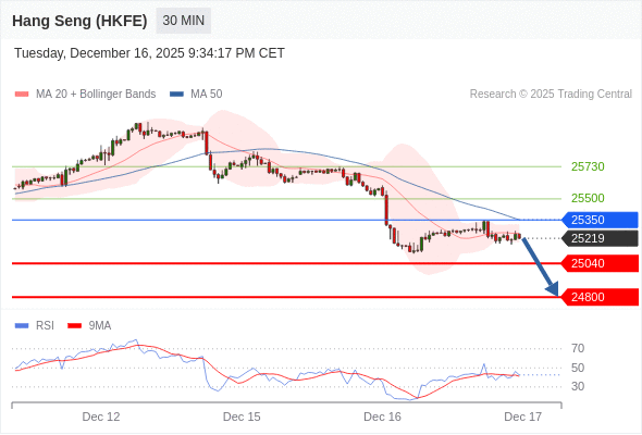 交易策略: 在 25350 之下,看跌,目标价位为 25040 ,然后为 24800 。