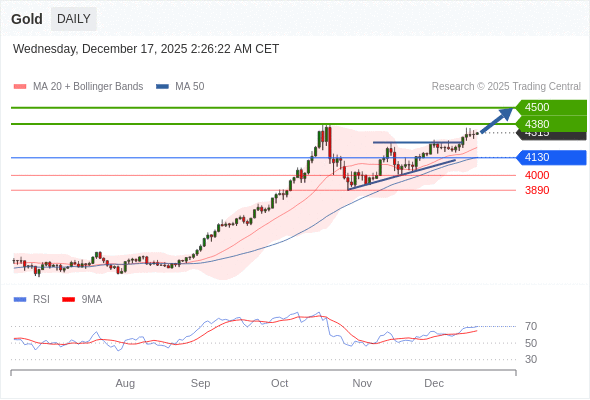 在 4130 之上,看涨,目标价位为 4380 ,然后为 4500 。