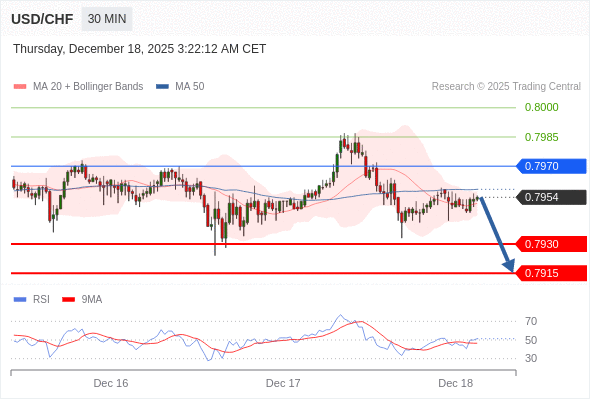 在 0.7970 之下,看跌,目标价位为 0.7930 ,然后为 0.7915 。