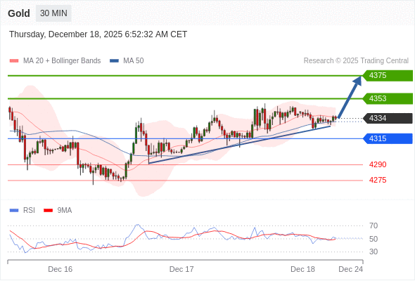 在 4315 之上,看涨,目标价位为 4353 ,然后为 4375 。